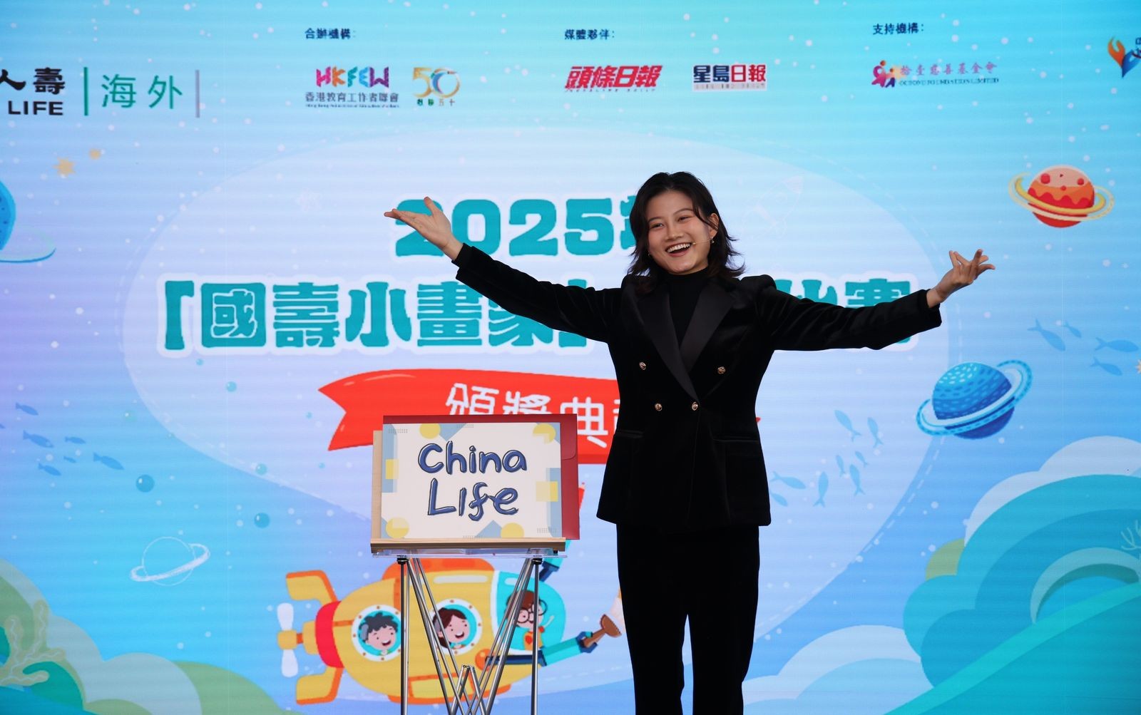 由中国人寿保险(海外)股份有限公司(「中国人寿(海外)」)主办、香港教育工作者联会(「教联会」)合办、「头条日报」及「星岛日报」为媒体夥伴、拾壹慈善基金会支持的2025年「国寿小画家」绘画比赛颁奖典礼已於1月31日在红磡中国人寿中心圆满举行。