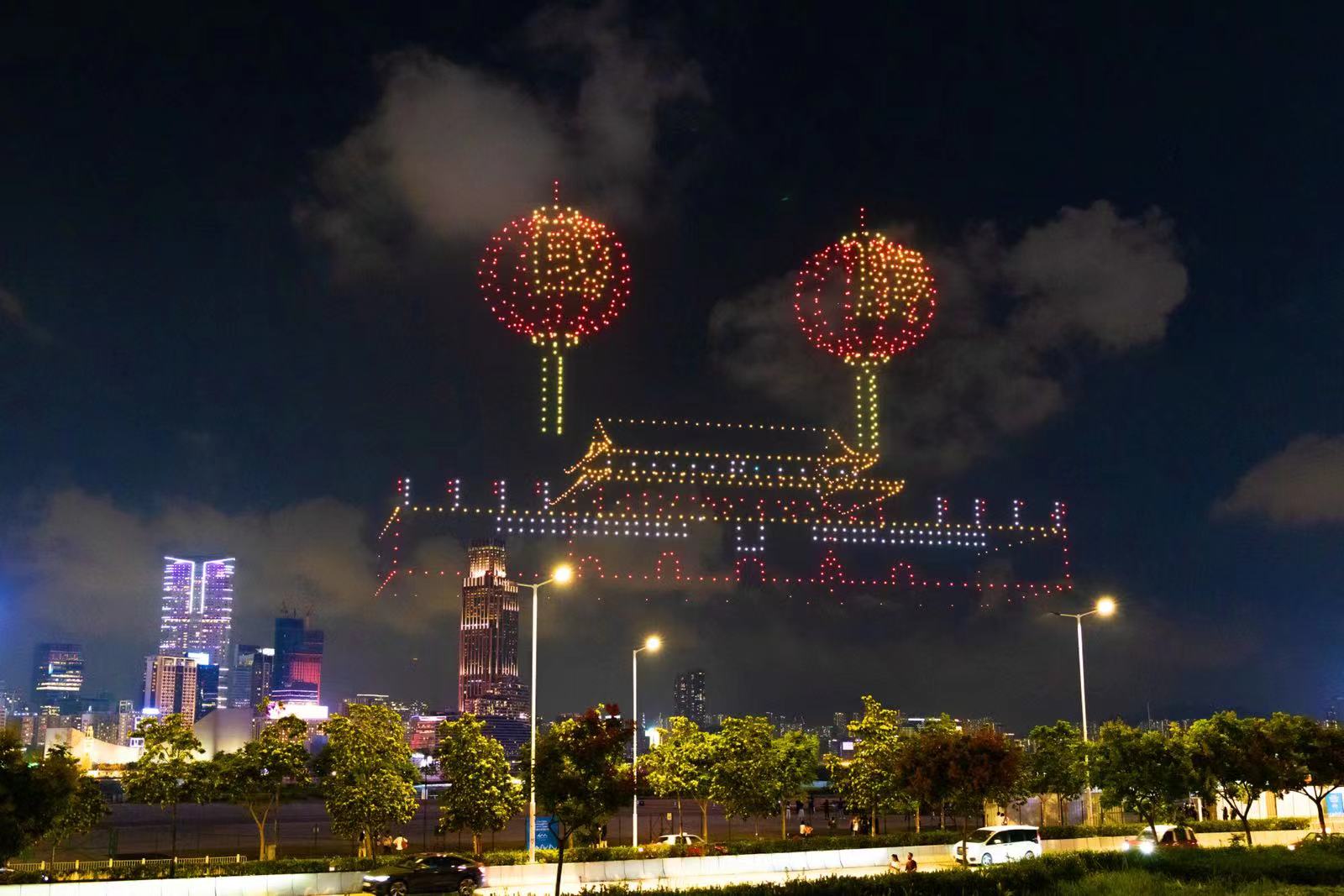 千架无人机腾空而起,在维港夜空炫丽的舞台中,以传统文化与现代科技创新融合的创意形式,勾划出一幅幅绚烂的图案,动态展现了中秋节日习俗、国庆祝福及香港著名地标等节日意象,以及中国人寿(海外)祝贺国庆的视觉元素,为维港两岸的市民带来了一场绚丽壮观的感官飨宴,吸引了众多市民及旅客驻足观赏。