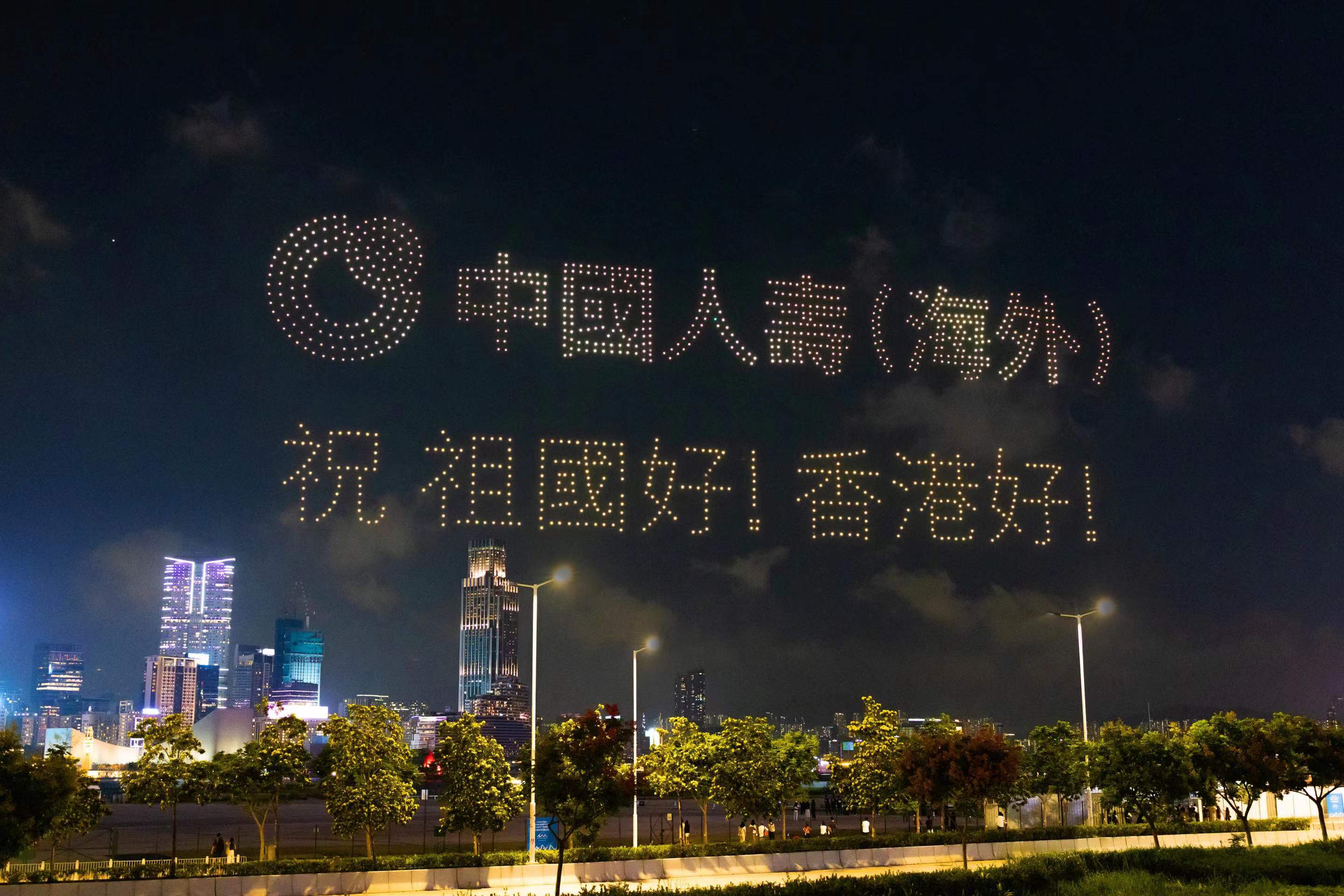 9月29日晚,由香港特区政府和中央政府驻港联络办指导,紫荆文化集团主办、中国人寿保险(海外)股份有限公司(“中国人寿(海外)”)全力支持的“月来越好,欢乐湾区”大型无人机编队表演在中环海滨活动空间上演。