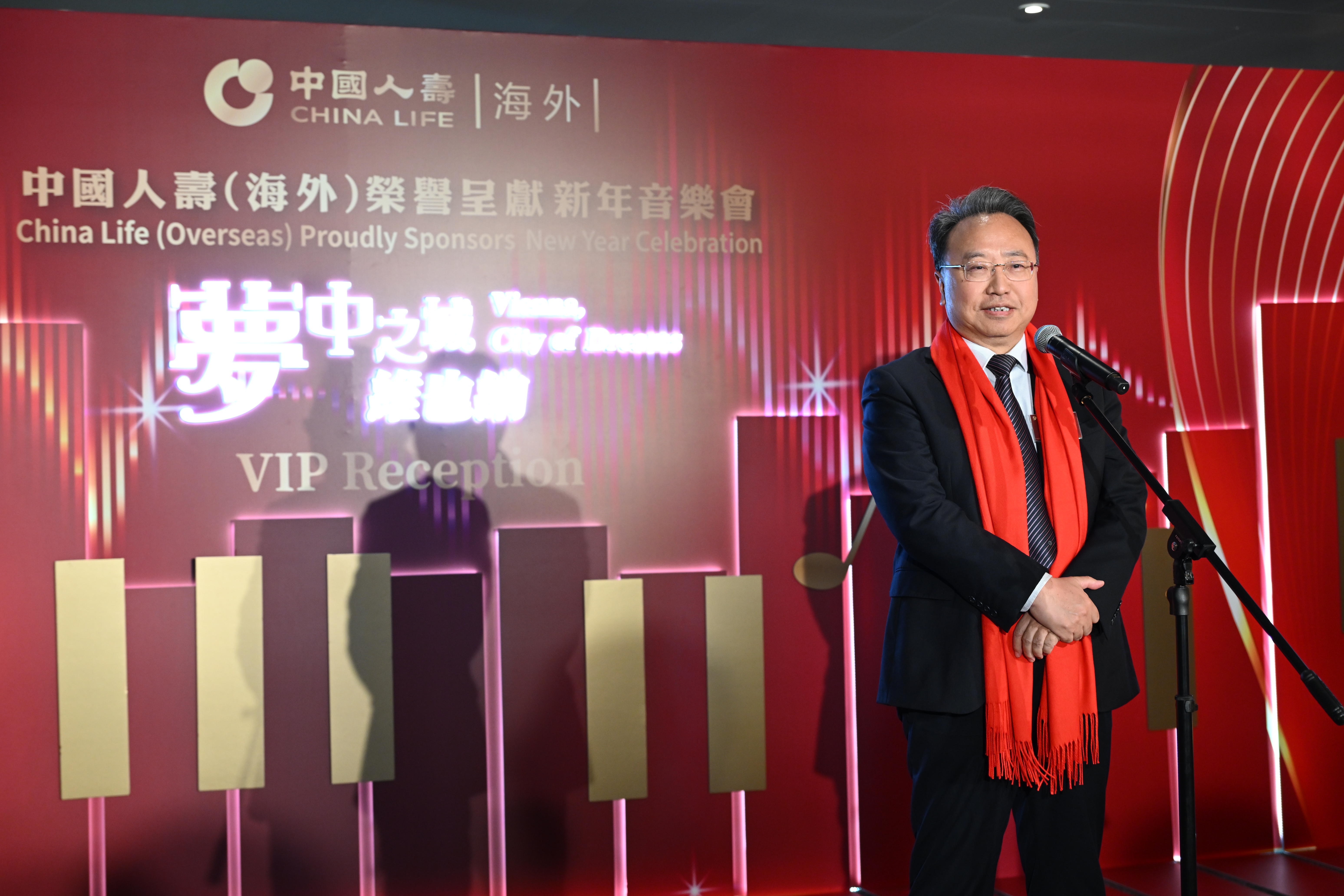 12 月 29 日,值元旦佳节来临之际,由中国人寿保险(海外)股份有限公司 (“中国人寿(海外)”)冠名赞助的首场 “中国人寿(海外)荣誉呈献--新年音乐会:梦中之城维也纳” 在香港文化中心音乐厅成功举行。来自逾 60 家政府组织、金融机构及媒体的众多嘉宾出席了音乐会开幕招待会,气氛热烈隆重。