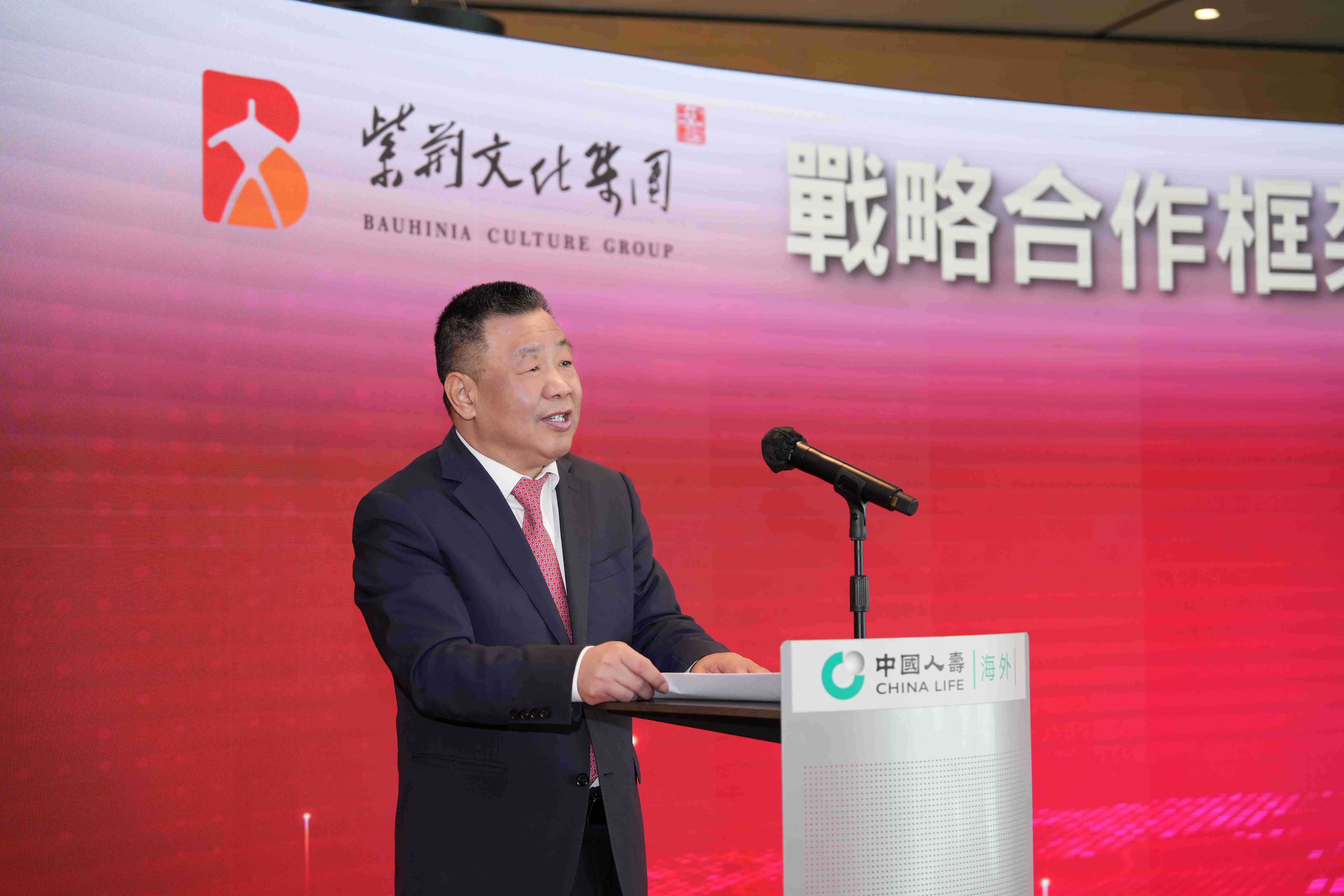 簽約儀式上,中國人壽(海外)總裁劉月進先生對紫荊文化集團一行來訪表示歡迎,並對紫荊文化集團在文化出海領域的優秀工作表示高度認可。他介紹了中國人壽 (海外)公司的歷史脈絡及最新發展概況,並表示海外公司正全面貫徹中國人壽「333戰略」,希望雙方以此次戰略合作為契機,攜手並進,實現互利雙贏,為促進文化與金融的深度融合貢獻力量,為文化產業和保險金融產業出海做出新的典範,更好地推動中華文化走向世界。