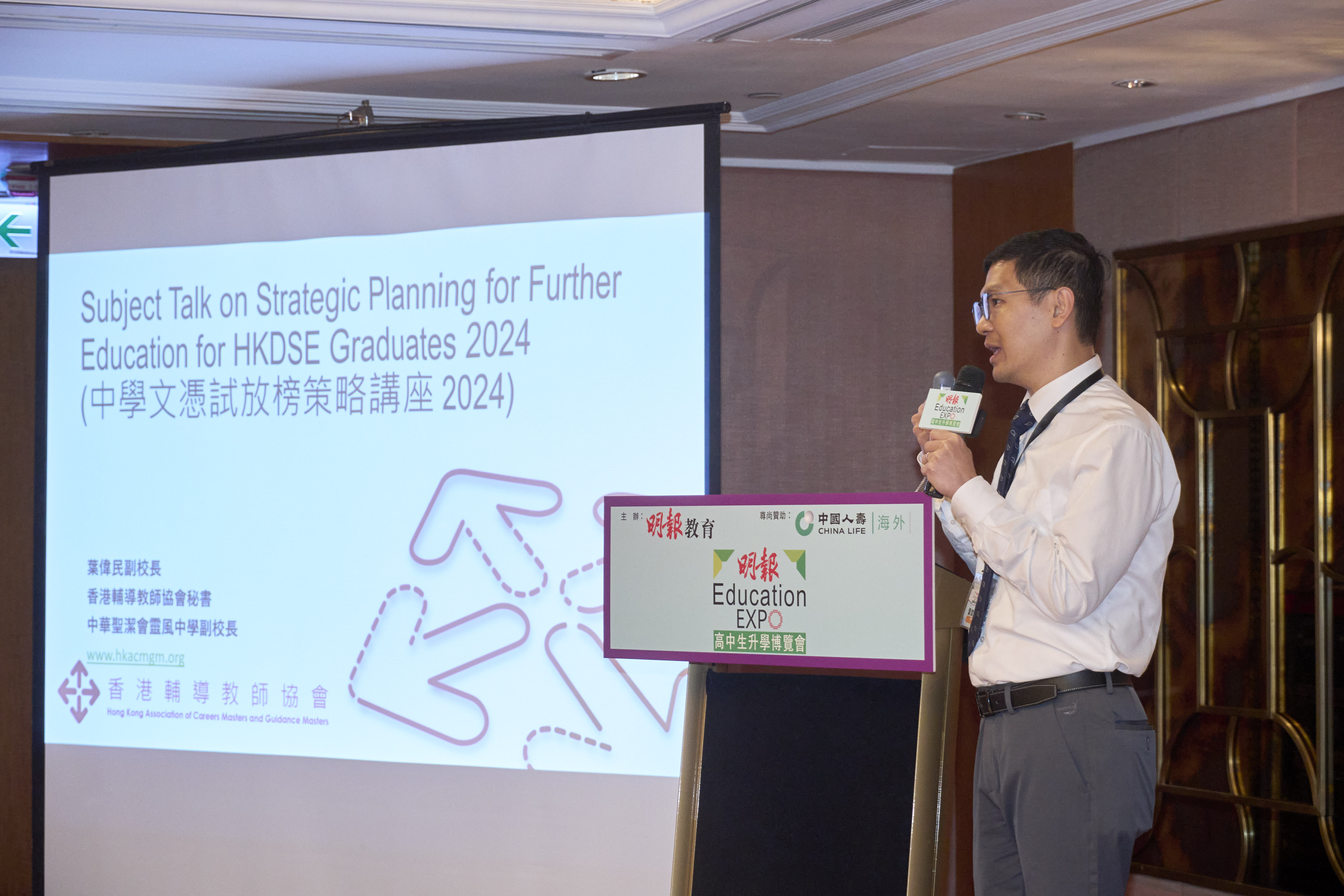 本地升學方面,多間專上教育機構如香港城市大學、香港恒生大學,分別介紹課程特色、海外交流及實習機會、畢業生就業前景等。另外,香港輔導教師協會分享了DSE放榜改選攻略,包括最新聯招統計數據以及考生出路分析等。