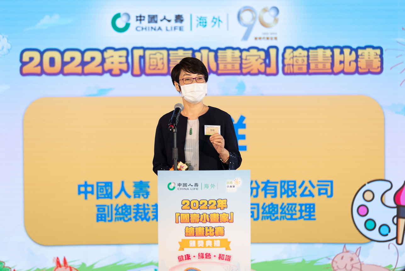 中國人壽(海外)作為本地領先的壽險公司之一,致力履行社會責任,推動多地兒童及少年藝術教育的發展。今年「國壽小畫家」繪畫比賽於7月展開,作品主題為「健康:躍向健康人生」、「綠色:共創綠色未來」、「和諧:構建和諧家園」。中國人壽(海外)副總裁兼香港分公司總經理忽群女士在頒獎典禮致辭時表示:「香港正身處於世界百年未見之大變局,面臨疫情、經濟等多方面的挑戰。同學們表現出來的積極包容、團結友愛,給我們帶來了希望與力量。少年智則國智,少年强則國强。搭建一個讓同學們展示才藝、傳播積極能量的平台,正是我們舉辦『國壽小畫家 』賽事的初心。」